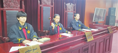 3月29日,墨玉县南航明珠小学学生在模拟法庭庭审现场。地区融媒记者 王金晶摄