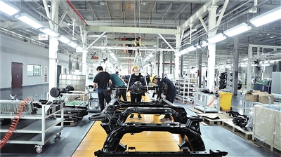地区融媒讯 (通讯员 闫兆霞 毛永娇)5月12日,在新疆皖疆汽车有限公司总装车间,工人正在流水线上组装汽车零部件,车间一派忙碌景象。