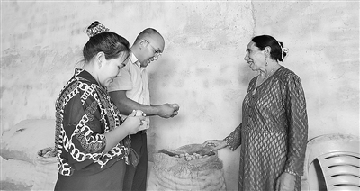 安外尔·艾尔肯与妹妹苏比努尔·艾尔肯去村民家收购特色农产品。