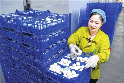 8月24日,在连云港市灌南县一家食用菌企业,工作人员整理双孢菇。 近年来,江苏省连云港市灌南县积极发展食用菌产业,加快推进食用菌全产业链开发,把食用菌产业作为实现乡村振兴和现代农业的先导产业、示范产业,不断推进农业增效、农民增收。新华社记者 李博摄