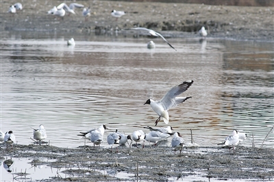 石榴云/新疆日报讯 (记者 赵梅)3月中旬,和田县英艾日克水库迎来首批北归的候鸟。一群群红嘴鸥、鸬鹚、野鸭等候鸟,时而嬉戏,时而觅食,为正在苏醒的湿地增添了无限生机。