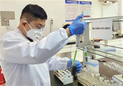 检测员对样品进行抽样检测。地区融媒记者 古哈尔尼沙摄