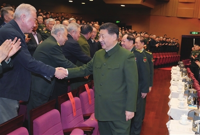 下午4时许,习近平来到老同志中间,全场响起热烈掌声。习近平同大家亲切握手、互致问候,关切询问他们的身体和生活情况,共同回顾过去一年党、国家和军队事业走过的不平凡历程、取得的重大成就。老同志们一致表示,要更加紧密地团结在以习近平同志为核心的党中央周围,坚持以习近平新时代中国特色社会主义思想为指导,深入贯彻习近平强军思想,深刻领悟“两个确立”的决定性意义,坚决做到“两个维护”,贯彻军委主席负责制,弘扬光荣传统、永葆政治本色,坚定信心、团结奋斗,继续为打好实现建军一百年奋斗目标攻坚战,为以中国式现代化全面推进强国建设、民族复兴伟业作出积极贡献。