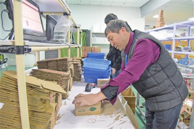 仓库工作人员正在打包。地区融媒记者 张亚辉摄