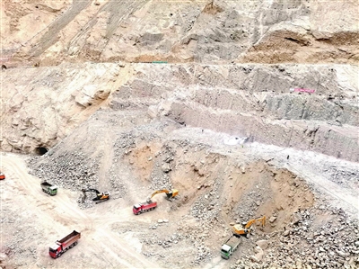 2月4日,在和田玉龙喀什水利枢纽工程施工现场,大型机械正在挖运土石方。地区融媒通讯员 韩丽摄