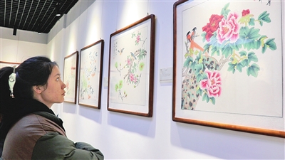 返乡学生欣赏画作。地区融媒通讯员 汪瀚冰摄