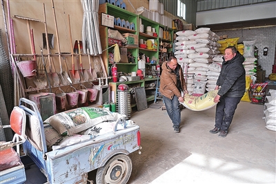 店内另一角,达瓦巴扎村村民阿布都木明·阿布力孜正忙着选购化肥。看着眼前各种化肥,一时不知如何挑选。店主主动上前询问种植需求,为他推荐适合的化肥种类。“我家种了7亩冬小麦,提前过来购买化肥,根据种植面积和经验,210公斤就足够了。”阿布都木明边把化肥搬上电动三轮车边说。