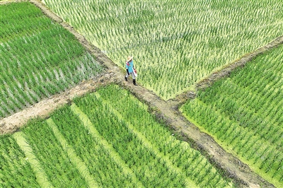 在海南三亚,国家南繁科研育种基地的科研人员正在对水稻进行管护。