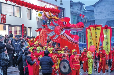 2月15日,大墅镇儒洪村村民们举行“赶十八”舞龙表演。 2月15日是农历正月十八,浙江省杭州市淳安县大墅镇儒洪村迎来了热闹的“赶十八”民俗市集。村民和游客一起观看唱大戏、跳竹马、舞龙灯、猜灯谜,共同感受这个传统民俗的魅力。 “赶十八”始于明朝永乐年间,至今已有600多年的历史。 新华社记者 徐昱摄