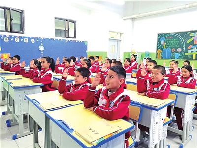 2月17日,和田县第四小学四年级(1)班学生争相分享假期生活。地区融媒通讯员 韩丽摄
