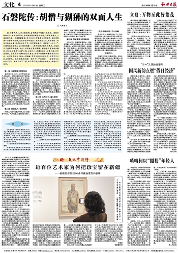 作者巧妙运用敦煌艺术特有的象征系统,将石磐陀塑造成流动的隐喻载体。其面容在“胡商—沙弥—猢狲”间不断流转,恰似莫高窟壁画经氧化褪色的金箔:被剃度的虬髯暗喻世俗身份的撕裂,腰间短刀成为游走佛魔的界碑,而最终凝固为壁画中的猴形轮廓,则完成了从历史人物到文化符号的终极蜕变。这种身份嬗变暗合佛教“诸行无常”的哲学观,让个体命运成为映照众生相的棱镜。