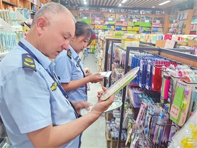 检查组还对校园周边200米范围内的文具店、餐饮店和药店展开拉网式排查。在文具店,执法人员重点检查2B铅笔、橡皮、中性笔、尺规等考试必备文具的质量安全、标识认证及是否存在“三无”、假冒伪劣等。在药店,重点查看药品的购进渠道、贮存条件是否符合要求、是否凭处方销售处方药等,规范药店药品经营使用行为,保障用药安全。