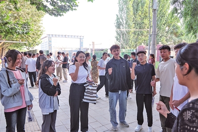 和田市第二高级中学考生谢姆西努尔·阿卜杜海比尔既兴奋又紧张地说:“今天是高考第一天,希望我和同学们都能取得好成绩,加油!”