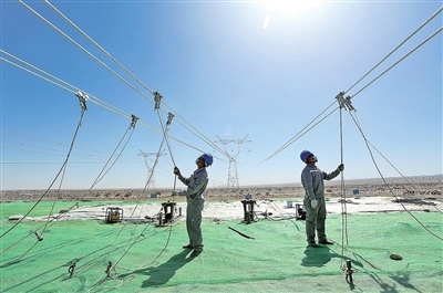 2021年4月10日上午,莎车至和田Ⅱ回750千伏输变电工程线路正式放线。