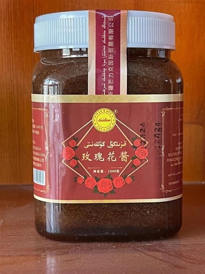 被列入县级非物质文化遗产代表性项目,原料为玫瑰花和白砂糖。制作时,取玫瑰花瓣通风晾干,加入白砂糖搓匀,再用木棒砸捣均匀,装入瓶中封盖,置于阴凉通风处静置三周即可。玫瑰花酱属食疗类营养食品,能加强肠胃消化、改善肝脏功能、补肺(对肺结核有益)、改善心脏功能、助呼吸畅通、缓解气喘,还可为身体提供营养。