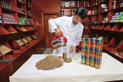 “和田药茶”作为维吾尔医药的一种,是民间传统饮品,不含茶叶,以丁香、枸杞等30余种当地药食同源原料碾碎泡制。和田药茶有20多种配方,依季节选用,饮用时取5-6克,用100摄氏度开水冲泡3-5分钟即可。