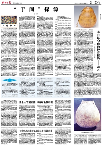 昆仑山是我国西部山系的主干,属于亚洲中部大山系。又被称作昆仑虚、中国第一神山、昆仑丘或玉山。昆仑山下的于阗古国,传说是神的安逸住所,天神在那里安家落户,颐养天年。《于阗国授记》记载:于阗建国的“瞿萨旦那”地乳国王计划建造都城。都城建在啥地方好呢?他发出通告,请通晓地理的人献策。来了一个相貌十分丑陋的人,脸上涂着黑灰,背着一个硕大的葫芦,信誓旦旦地说自己可以帮助大王建造都城。在众目睽睽之下,他将背着的葫芦解下,打开葫芦的塞子。只见葫芦流淌出源源不断的水,弯弯曲曲像是画画一般,在荒野之地居然浇出了一个又一个圈,那些圈的不远处出现了可以建城的泥土。大王正在惊讶之中,那个丑陋的奇人,忽然消失得无影无踪。大王深信这是神灵佑护,于是在叩谢神灵之后,依据水流浇灌出的印记以及那些泥土,大兴土木,建造了易守难攻的于阗故城。