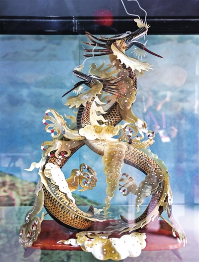 昌吉回族自治州展厅展示的骨雕作品。