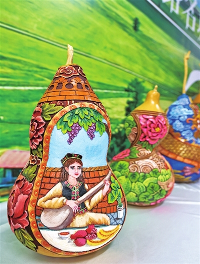 哈密市展厅展示的葫芦雕刻作品。