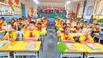 在于田县CEC希望学校,教师提前将教室布置得焕然一新,黑板上画着“欢迎回家”的卡通图案,课桌上整齐地摆放着崭新的课本。棒棒糖、爱心气球……每个班级都用自己的方式营造出具有班级特色的仪式感,孩子们一进教室就感受到了浓浓的温暖。