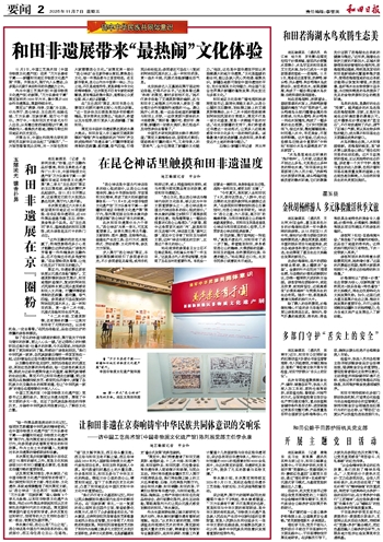 和田地区文化体育广播电视和旅游局党组书记、副局长周能文表示,从昆仑山麓的玉石雕琢,到丝绸之路上的艾德莱斯绸舞动,从十二木卡姆的悠扬旋律到阿依旺民居的日常烟火,展览不仅是一场文化盛宴,更是一次跨越千里的对话。“在北京援疆的支持下,我们希望通过非遗这一生动形式,让更多人近距离感受中华文化多元一体的绚烂多彩。诚挚邀请大家走进新疆、走进和田,亲身感受这片土地的热情与魅力。”