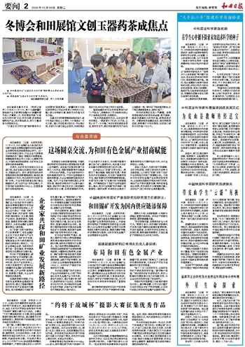 地区融媒乌鲁木齐讯 (特派记者 阿卜力克木)11月15日,第十九届新疆冬季旅游产业交易博览会暨2025新疆热雪节进入开幕第二天,和田展馆凭借“五星出东方利中国”文创、和田玉器、药茶等地域特色产品,成为展会焦点,吸引大量游客与采购商关注。