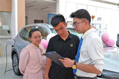 工作人员为顾客介绍优惠政策(资料图)。 地区融媒记者 努尔古再丽摄