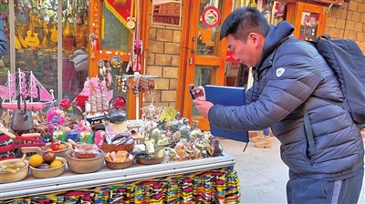 游客用手机记录各类非遗文创产品。地区融媒记者 努尔古再丽摄