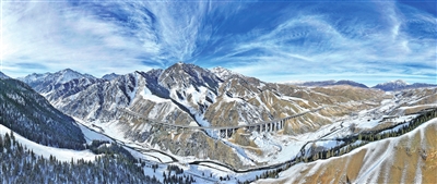 桥隧相连的乌尉高速公路穿越天山山脉(12月20日摄,无人机全景照片)。