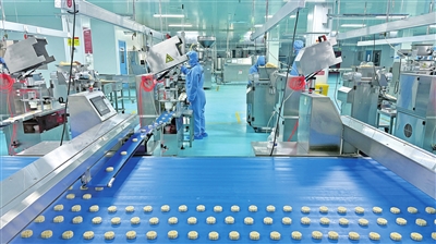 地区融媒讯 (记者 阿卜力克木)2月2日,记者走进新疆美滋滋食品有限责任公司生产车间,四条自动化生产线正全速运转。金黄的月饼与绵软的蛋糕在传送带上匀速传送、有序下线,工人手脚麻利地进行包装、装箱、搬运和装车作业。各环节衔接流畅,生产节奏紧凑而高效,全员以饱满的热情投入生产,奋力冲刺新年“开门红”。