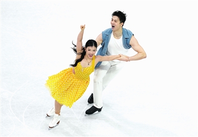 当地时间2月6日,米兰—科尔蒂纳冬奥会花样滑冰项目冰上舞蹈韵律舞比赛在意大利米兰举行。