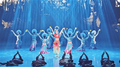 舞台上,跌宕起伏的剧情、华丽精美的服饰造型、沉浸式多媒体场景,让观众仿佛穿越时空。当“五星出东方利中国”织锦护臂亮相舞台时,全场观众屏息凝神,无不为文物背后的故事所震撼。