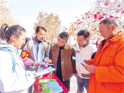 3月22日,地区启动“世界水日·中国水周”宣传活动。图为志愿者向市民宣传水利知识。地区融媒记者 古哈尔尼沙摄