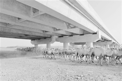 当日,与其其汗一号桥相隔3公里的渔湖大桥下,萨吾则克乡祥和村村民麦麦提江·麦提托合提正赶着200只骆驼通过大桥,以到达对面湿地区域。“大桥修筑不仅为动物提供了安全通道,还最大限度地避免了对湿地的破坏。”吕风国告诉记者。