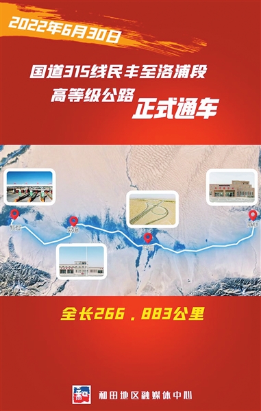 一声口令,国道315线民丰至洛浦段公路(以下简称民洛公路)正式通车,标志着和田地区实现高等级公路贯通。这是世界上首条沙漠铁路环线在和田形成半个月内,和田又一沙漠公路环线形成,标志着和田形成机场、铁路、高等级公路交通新格局,和田彻底由南疆口袋底变为口袋口,和田将迎来文化、经济、社会、民生各项事业发展新机遇。