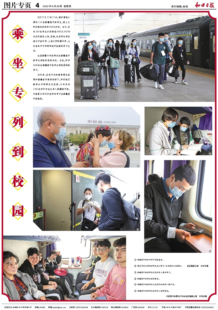 8月27日17时17分,满怀喜悦心情的114名新疆高中班学生,登上从和田前往沈阳的K4934列车。当日,还有344名学生分别乘坐K4918、K6748次列车前往上海、济南,这些学生将在浙江宁波中学