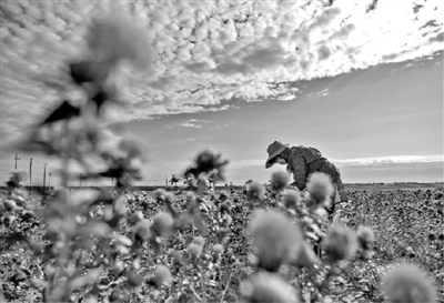 7月7日,采摘工人在新疆裕民县江格斯乡江格斯南村采收红花丝。