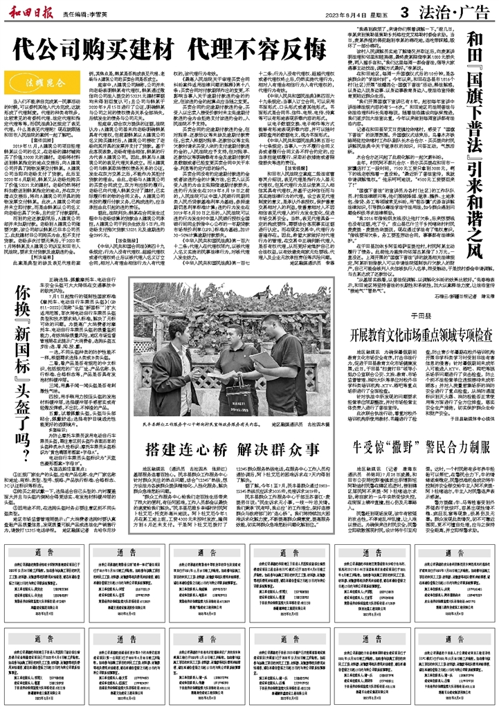 和田市人民法院立案庭二级法官曹春灵介绍说,表见代理是指行为人虽无代理权,但其代理行为足以使第三人相信其具有代理权,并基于这种信任而与其实施法律行为的代理。设立表见代理制度的意义,是承认外表授权,保护善意交易相对人的利益,使善意相对人不因相信表见代理人的行为发生变化,促进市场交易安全。当然,表见代理具备一定的构成要件,需要结合客观事实证据进行认定。而在现实交易中,代理行为普遍存在。因此,希望大家做好对代理行为的管理,在交易中正确判断代理人是否有权代理,从而更好地维护自己的合法权益,以有效避免商家无处要钱、代理人及企业无故承担责任等风险问题。