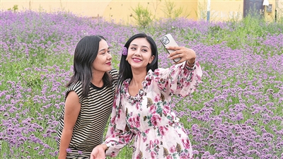 “以前只知道伊犁的薰衣草花海美,没想到家门口也有这么漂亮的马鞭草花海。”来自墨玉县城的游客热依拉说。