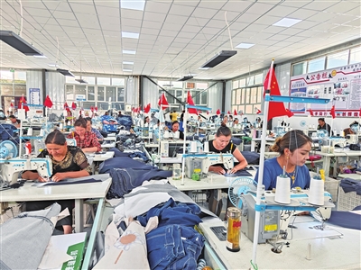 10月19日,记者走进策勒县策勒镇亚博依村新疆同舟服饰公司生产车间,缝纫机声此起彼伏,工人手法娴熟,精心制作服装,裁剪、缝制、锁边、缝制、熨烫……每一道工序都井然有序,忙碌而充满活力。