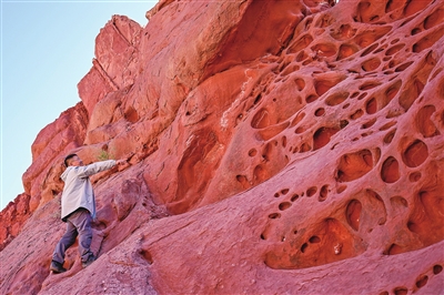 在新疆克孜勒苏柯尔克孜自治州阿克陶县布伦口乡一处峡谷,中国社会科学院地质与地球物理研究所副研究员唐自华在查看岩体(10月19日摄)。 10月19日,新疆克孜勒苏柯尔克孜自治州“巡礼中国西极 跨越昆仑天山”多学科科学考察活动在新疆阿图什市启动。 据了解,本次科考活动将对新疆克孜勒苏柯尔克孜自治州阿克陶县木吉乡、玛尔坎苏河、克孜勒苏河、乌恰县乌鲁克恰提乡、托云乡、伊尔克什坦口岸、吐尔尕特口岸等沿途的古道、历史遗迹和重要地理标志进行实地考察,活动预计持续至10月27日。新华社记者 丁磊摄