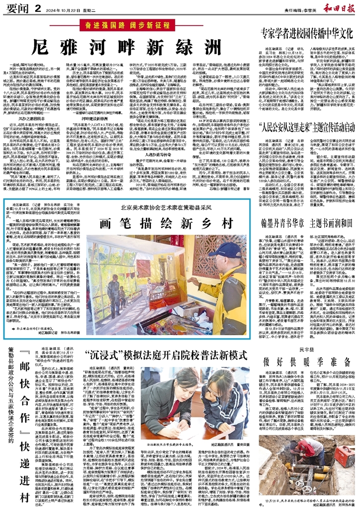 - 尼雅河畔新绿洲 一座城,隔河与沙漠对峙。 河的一侧是连绵起伏的沙丘,另一侧是4万居民生活的绿洲。 这是和田地区民丰县面临的沙漠围城之困。流沙逼近县城,流淌千年的尼雅河成为阻挡风沙的最后屏障。 阻挡沙漠
