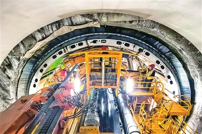 1月5日拍摄的引江补汉工程首台双护盾硬岩掘进机“江汉平安号”掘进施工现场。