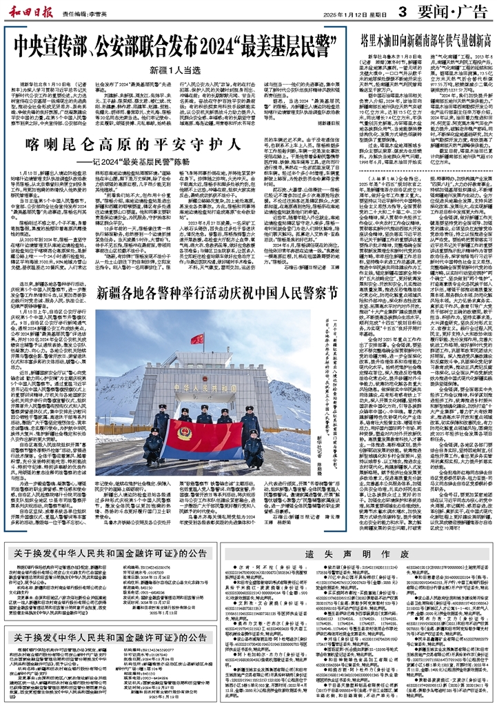 - 新疆各地各警种举行活动庆祝中国人民警察节 连日来,新疆各地各警种举行活动,庆祝第5个中国人民警察节,进一步激发全警工作热情和斗志,以更加昂扬姿态践行对党忠诚、服务人民、执法公正、纪律严明铮铮誓言。 1月10日上午,自治区公安厅举行庆祝