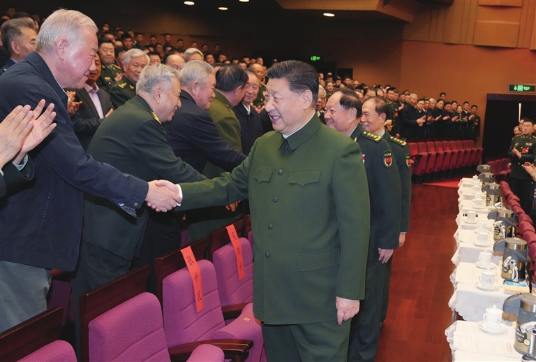 下午4时许,习近平来到老同志中间,全场响起热烈掌声。习近平同大家亲切握手、互致问候,关切询问他们的身体和生活情况,共同回顾过去一年党、国家和军队事业走过的不平凡历程、取得的重大成就。老同志们一致表示,要更加紧密地团结在以习近平同志为核心的党中央周围,坚持以习近平新时代中国特色社会主义思想为指导,深入贯彻习近平强军思想,深刻领悟“两个确立”的决定性意义,坚决做到“两个维护”,贯彻军委主席负责制,弘扬光荣传统、永葆政治本色,坚定信心、团结奋斗,继续为打好实现建军一百年奋斗目标攻坚战,为以中国式现代化全面推进强国建设、民族复兴伟业作出积极贡献。