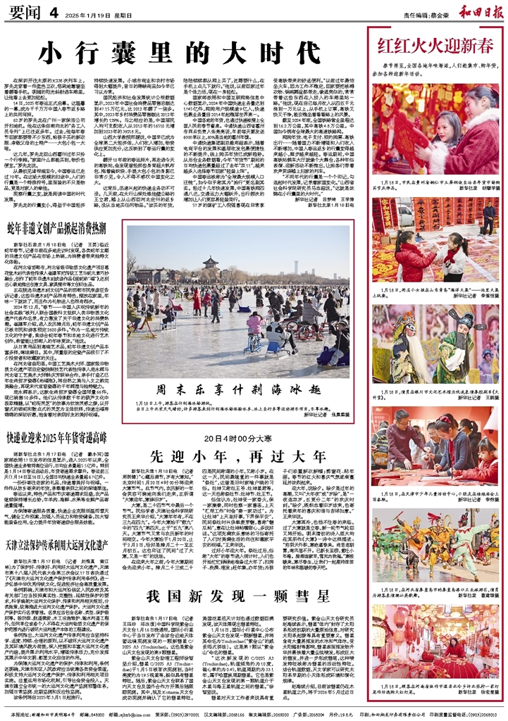 - 小行囊里的大时代 在深圳开往太原的K238次列车上,罗先龙穿着一件蓝色卫衣,悠闲地靠窗坐着翻看手机。明媚的阳光斜射进车厢里,让他看上去更加轻松。 14日,2025年春运正式启幕。这温馨的一幕,成为千千万万中国人