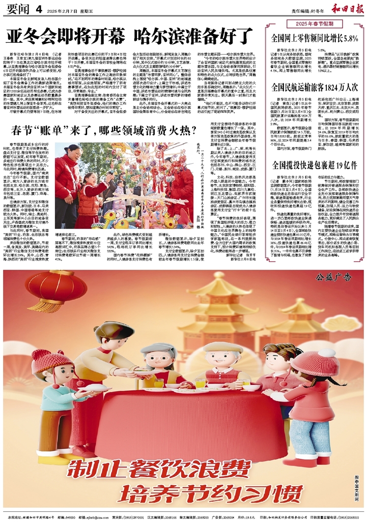 - 春节“账单”来了,哪些领域消费火热? 春节假期是返乡出行的好时机,也带来了支付消费热潮。盘点支付宝、微信等平台发布的数据可以发现,蛇年春节期间,多地出行消费火热的同时,不少特色经济也展现出十足活力。与此同时,跨境消费增长迅速。 今