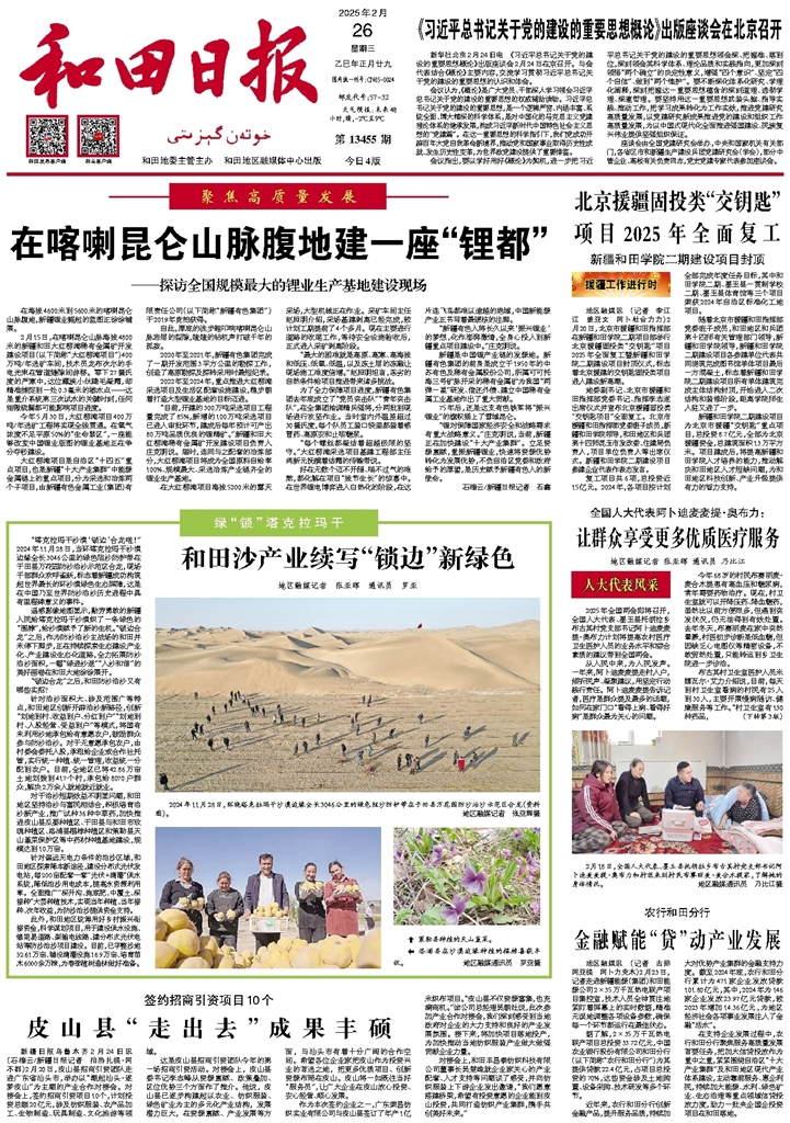 “目前,开建的300万吨采选项目工程量完成了85%,新增的100万吨采选项目已进入审批环节,建成后每年预计可产出80万吨品质优良的锂精矿。”新疆和田大红柳滩稀有金属矿开发建设项目负责人庄克明说。届时,连同与之配套的冶炼部分,大红柳滩项目将成为全国原料自给率100%、规模最大、采选冶炼产业链齐全的锂业生产基地。