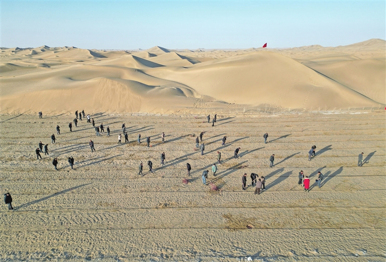 此外,和田地区统筹用好乡村振兴衔接资金,科学谋划项目,用于建设供水设施、修简易道路、架输电线路、建分布式光伏电站等防沙治沙项目建设。目前,已平整沙地32.61万亩、铺设滴灌设施18.9万亩、培育苗木6000余万株,为春季植树造林做好准备。