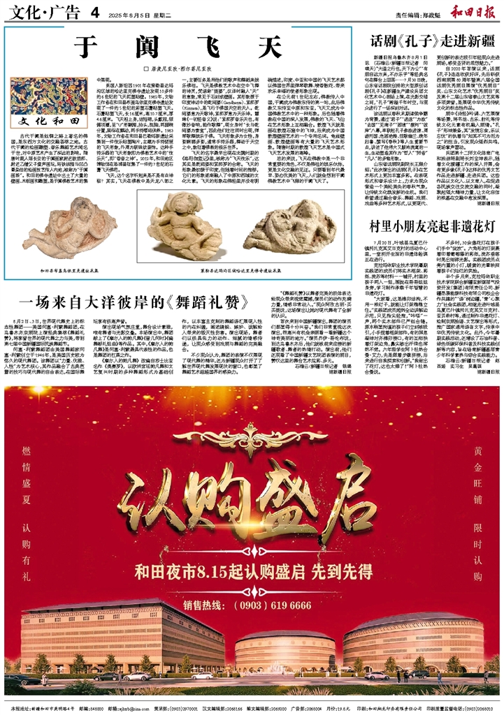 - 于阗飞天 策勒县达玛沟区域哈达里克佛寺遗址采集 古代于阗是丝绸之路上著名的佛国,是东西方文化的交融荟萃之地。古代于阗的绘画雕塑、音乐舞蹈艺术闻名于世,对中原艺术产生了深远的影响。隋唐时期入居长安的于阗画